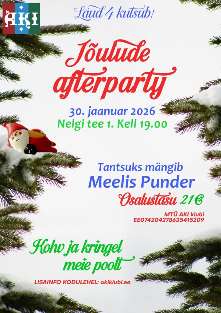 Laudkond 4 kutsub Teid 30. jaanuaril kell 19:00 tantsuõhtule, mille teema on “JÕULUDE AFTERPARTY”. Pidu toimub Viimsi Huvikeskuse saalis, Nelgi tee 1.
