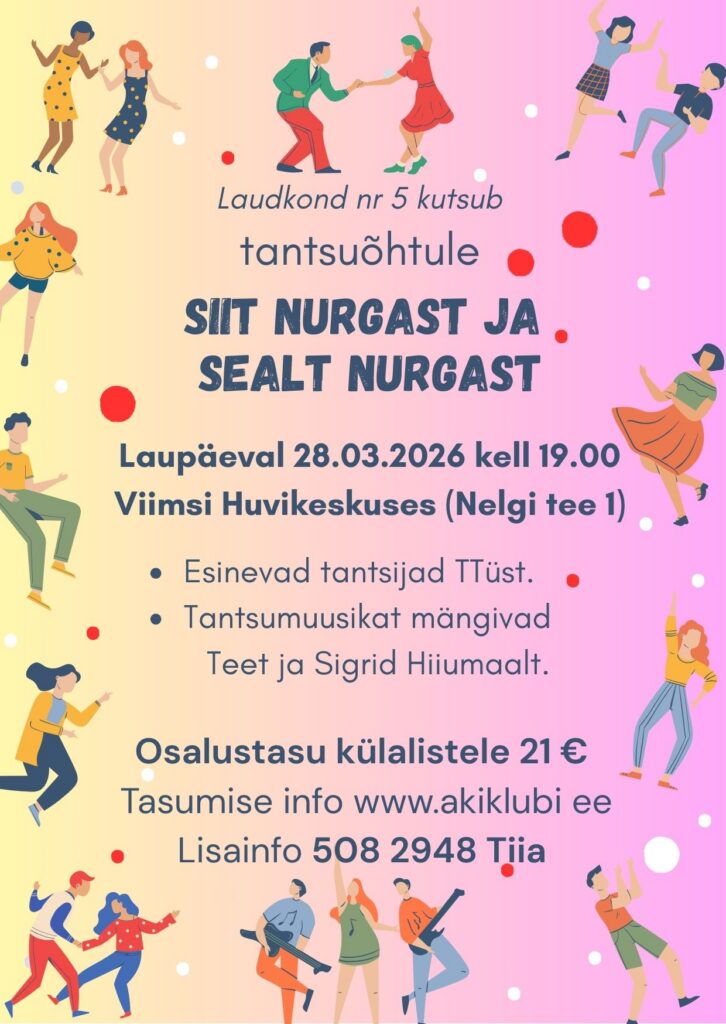 Laudkond 5 kutsub Teid laupäeval, 28. märtsil kell 19:00 tantsuõhtule “Siit nurgast ja sealt nurgast“, Ega täpsemalt tea, kas on koos üks “soust” rahva- seltskonna- ja peotantsust või mis … Näeme!